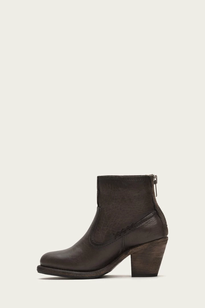 Casual with a practical mid heel, this bootie is the new relaxed cool. Artisan stitching and xxx detailing create character while raw edges impart a sense of stylish rebellion. Handcrafted from washed oiled vintage leather and designed with a back zip to get you easily in and out. – Leather lined- Rubber outsole- Goodyear welt construction- 5″ shaft height- 11 1/2″ shaft circumference- 2 1/2″ heel height