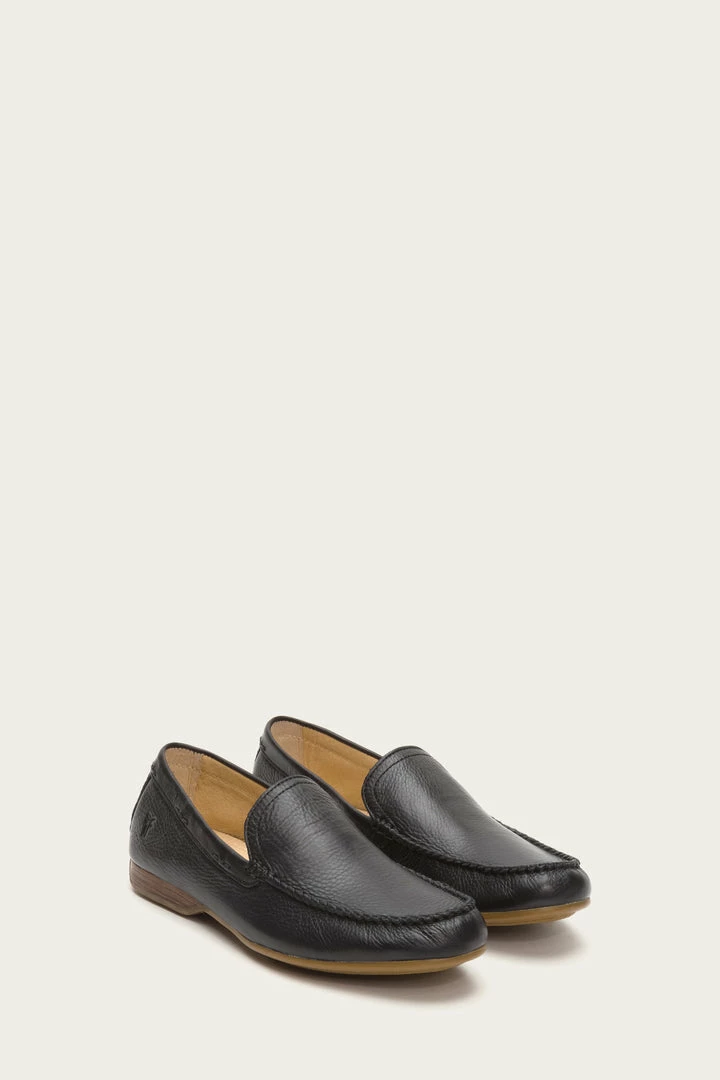 Classic Frye Lewis Venetian made in soft, burnished leather. – Soft Pebbled Full Grain leather upper – Unined – Rubber outsole