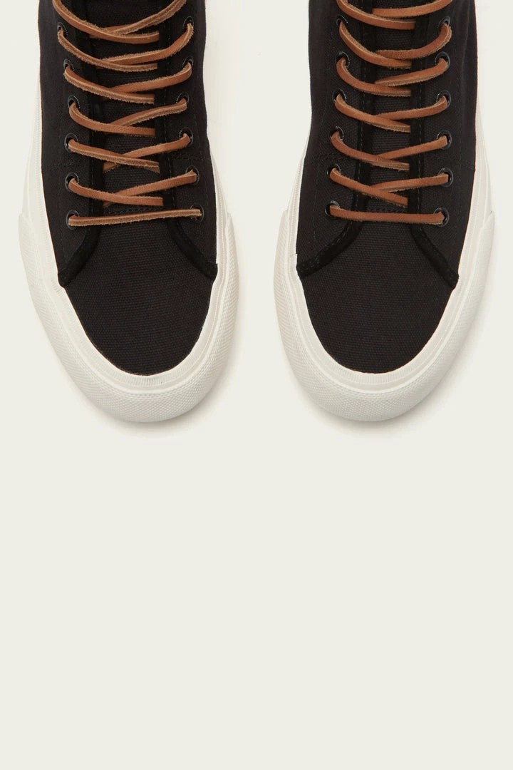 These high -top sneakers are made from hard-wearing canvas and have thick rubber soles for traction. As tailoring no longer requires polished Derby shoes or Oxfords to look complete – smart, minimalist sneakers such as this pair are just as acceptable.