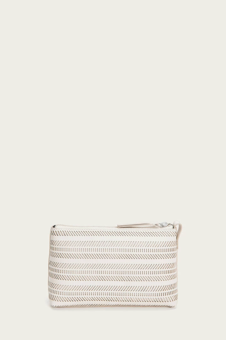 The sleek case was created for stowing everything from travel necessities to makeup or night-out essentials like your phone, keys and cards. Logo stamped at the front, it’s made from a laser perforated leather and has an easy-to-clean protective lining. Accessible through a top-line zipper pull closure.