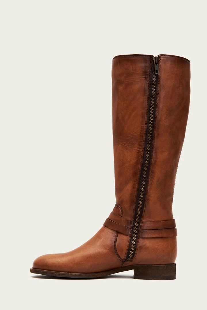 As with the heritage collection, this pair of ‘Melissa’ belted boots feature a logo button and stitching detail at the artisanal bridle strap. They have been crafted from leather that has been richly washed and well-oiled to perfectly complement the natural color palette.