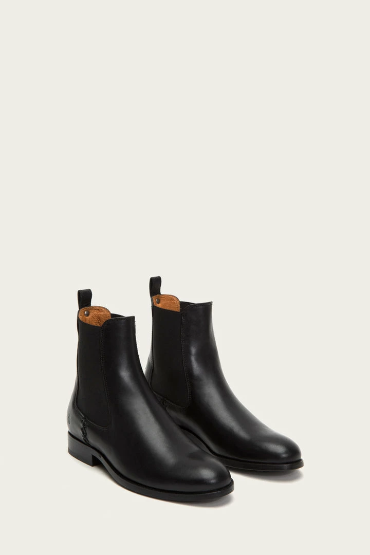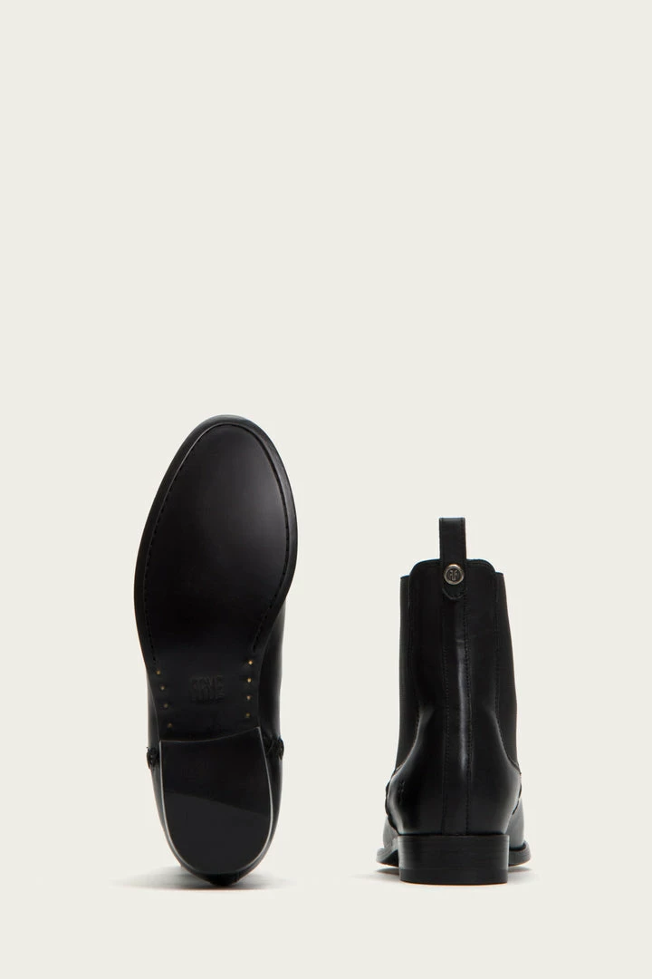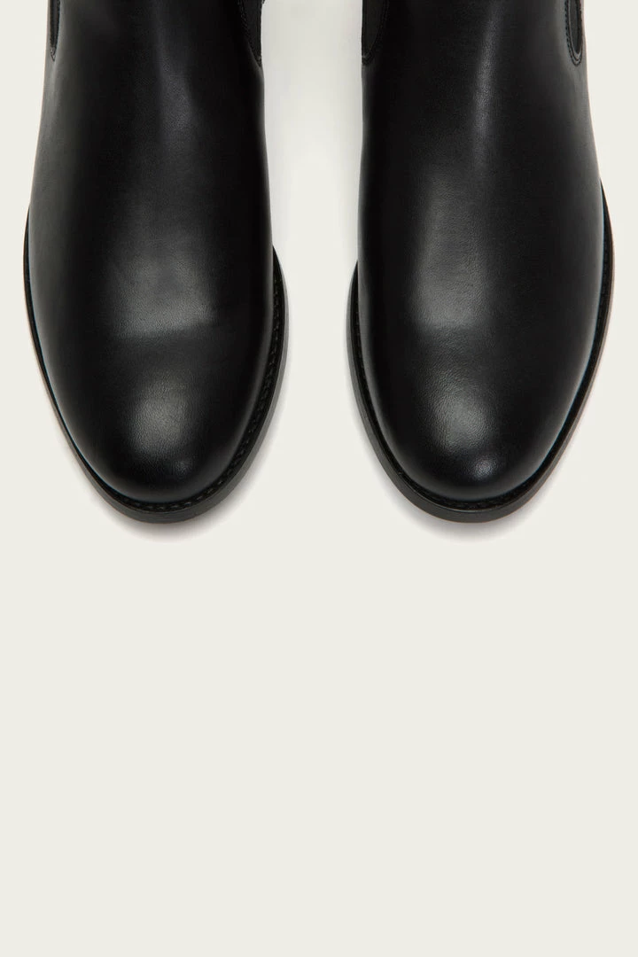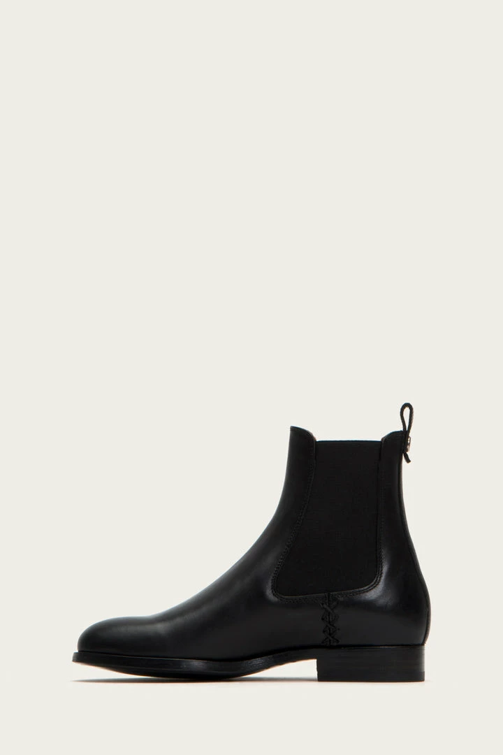 As the master of handcraftsmanship, these vintage Italian leather booties are built to last. They are constructed with a low box spring to lend the style a refined aesthetic with utmost durability. Signature Frye button detail at back heel pull tab. Classic Chelsea elasticized gores at sides.