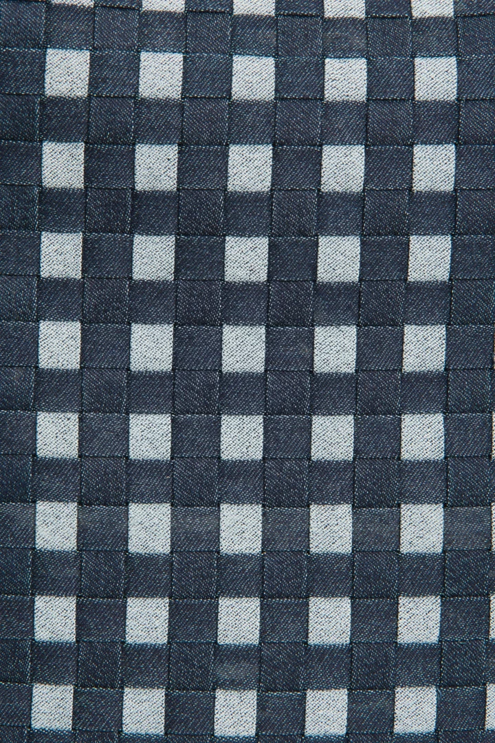 – Hand woven recycled denim with leather trim