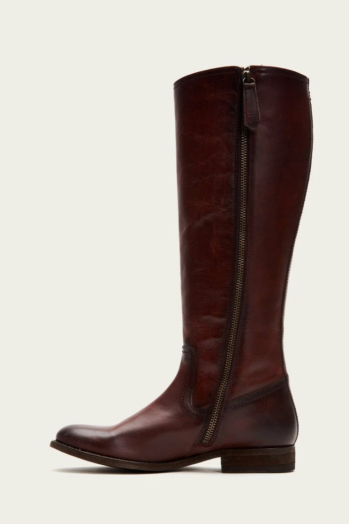 The tall Melissa boots are a classic for a reason. These equestrian-style boots have been crafted from antiqued pull up leather, detailed with signature hardware, inside zipper and rubber infused leather soles. – Leather lined