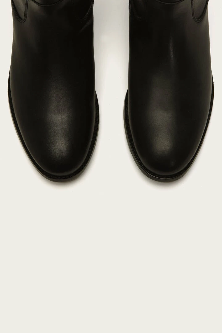 The Melissa equestrian-inspired boots are made from hard-wearing vintage leather in a zip-up design. Contoured through the ankle for support and the most flattering shape, they have a modernized hand-applied studded topline with a newly updated Frye signature button detail providing a tailored look. Slight heel with leather soles. – Leather lined