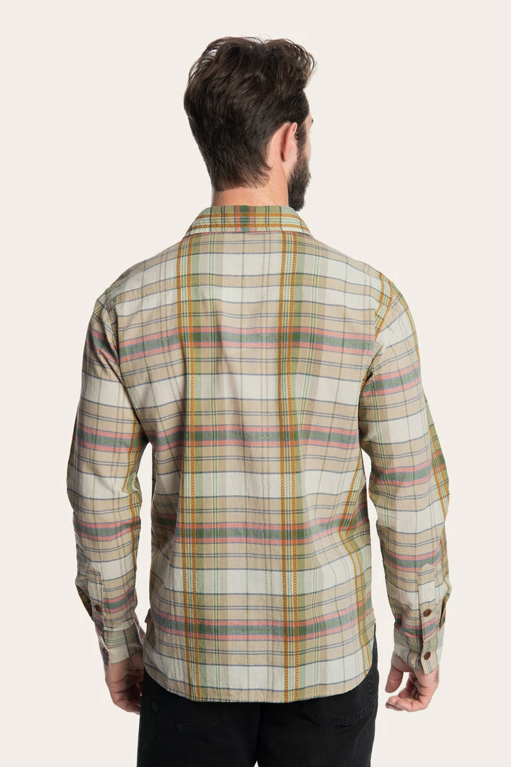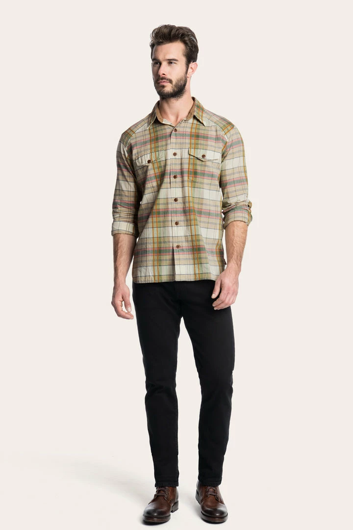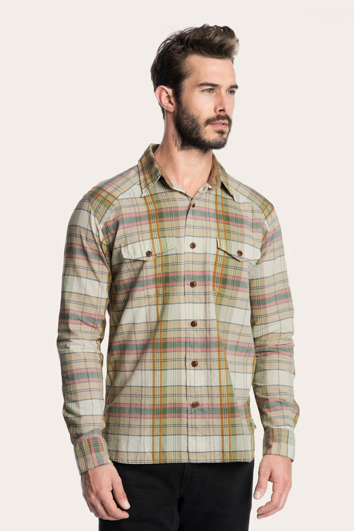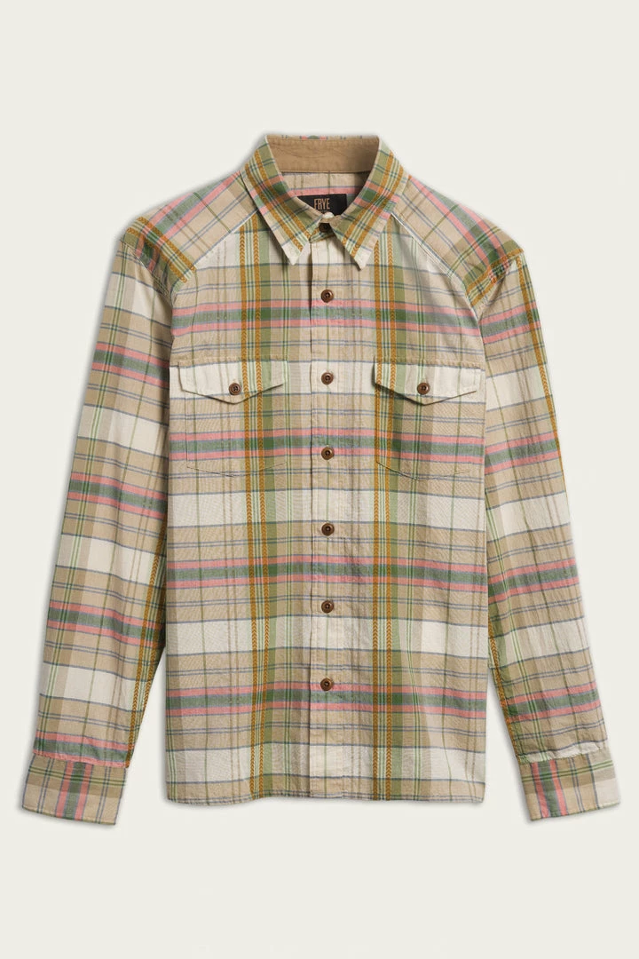 Frye applies the same care and consideration to the construction of its shirting as it does with it’s leather goods- hence the ‘Addison’ namesake. This piece is made from soft cotton-twill plaid print with a signature herringbone Dobbis inset. Classic details include: collar, button front placket, two flap pockets and cuffable long sleeves.