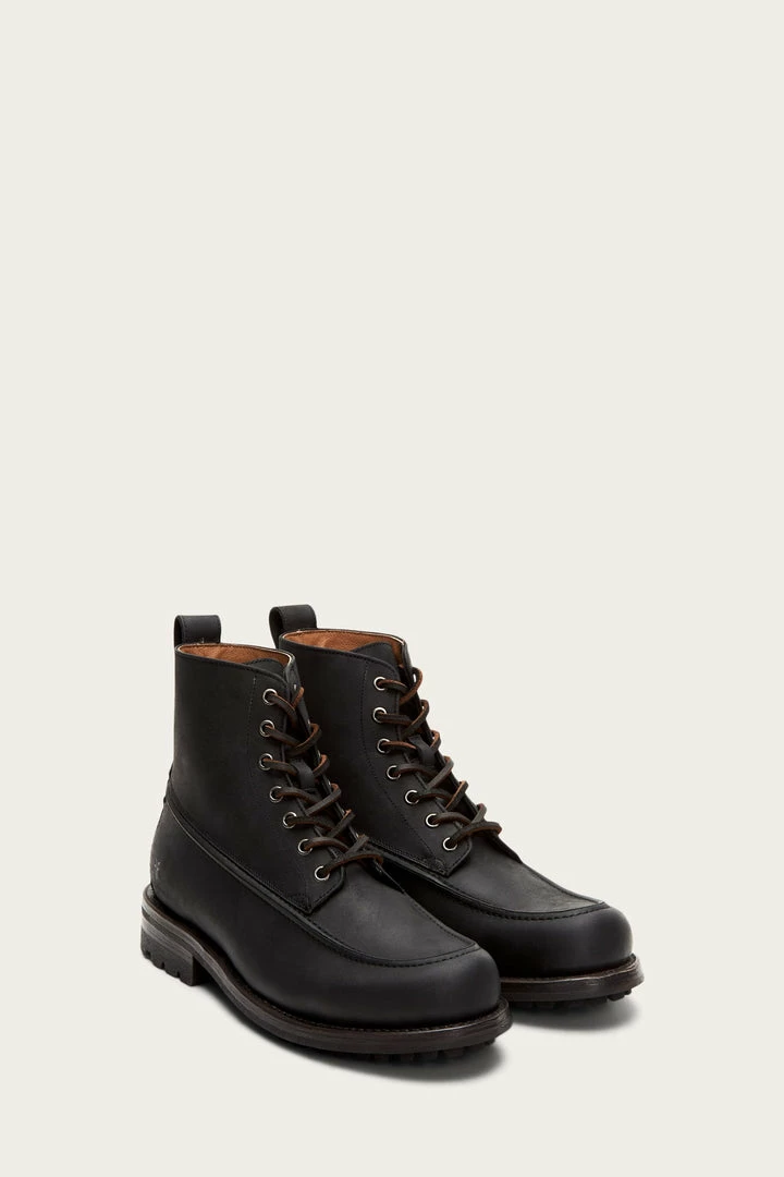 These boots combine flexibility and rugged detailing. Moc-toe stitched and rubber-soled for durability, they’ve been crafted to ensure the highest quality. The Goodyear welt and weatherproof treatment ensure these boots are built to last.