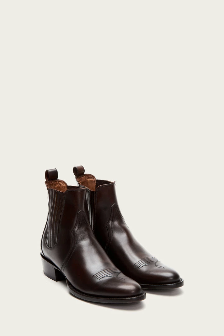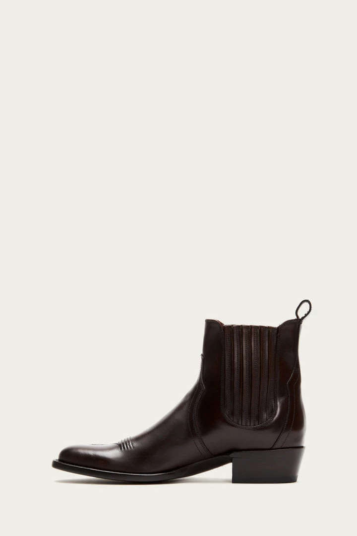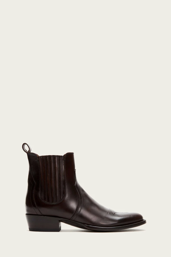 Equal parts Chelsea and cowboy style. Smooth pull up leather gives this round-toe silhouette with western-inspired wellington a ruggedly refined finish while the elastic finger-gore detailing guarantees easy dressing. – Leather lined
