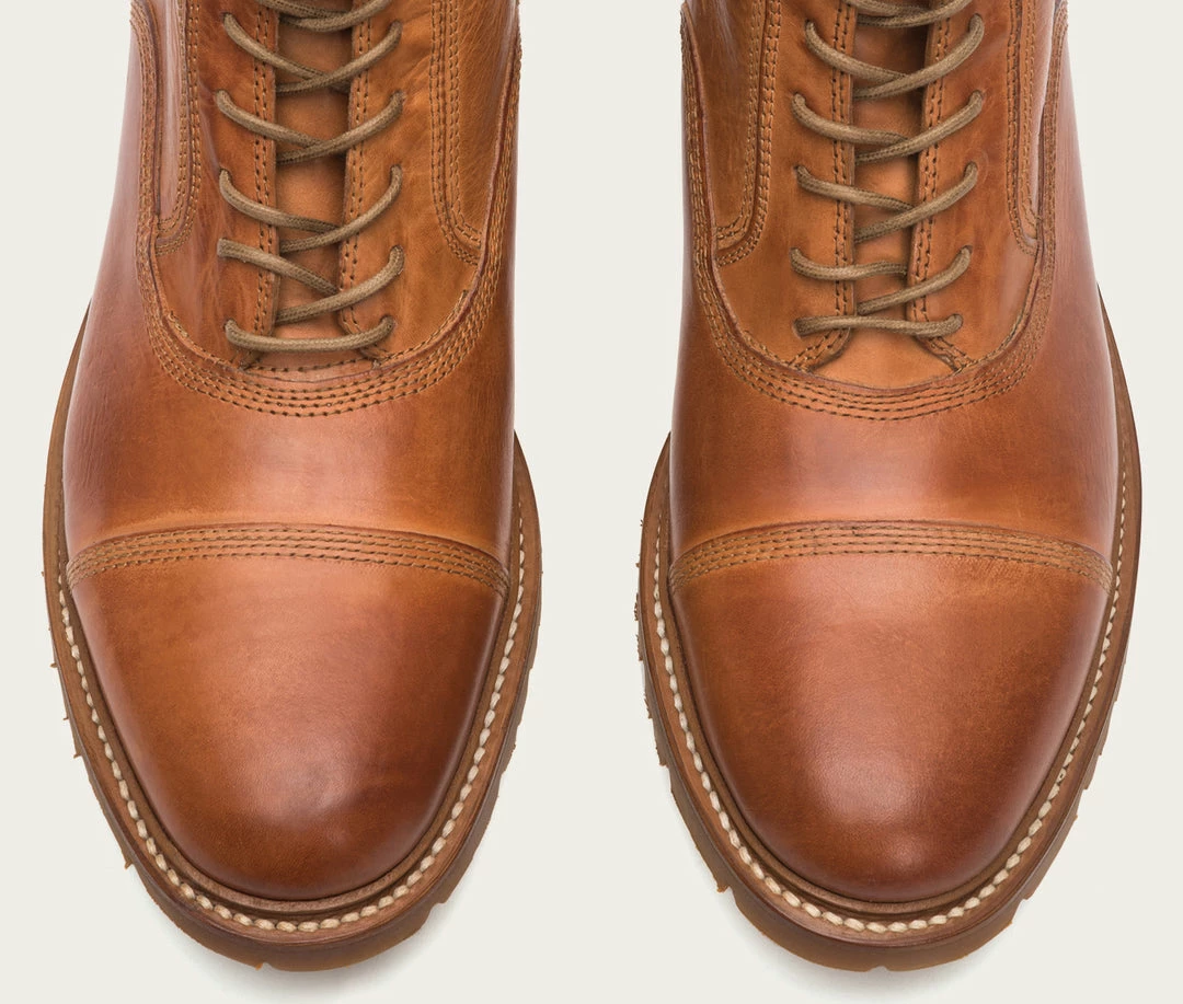 The more casual cousin of the James Lace-Up. The rubber lug sole transforms the classic lace-up into that everyday boot you can wear through the week straight into the weekend, with a few stops at your local watering hole in between. The light color of the lug adds high contrast and a dash of style. – Italian leather- Leather lined- Rubber outsole – 6″ shaft height- 3/4″ heel height- Stacked leather heel