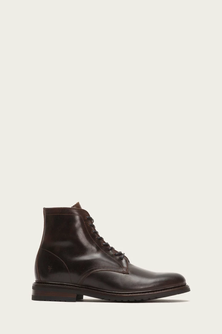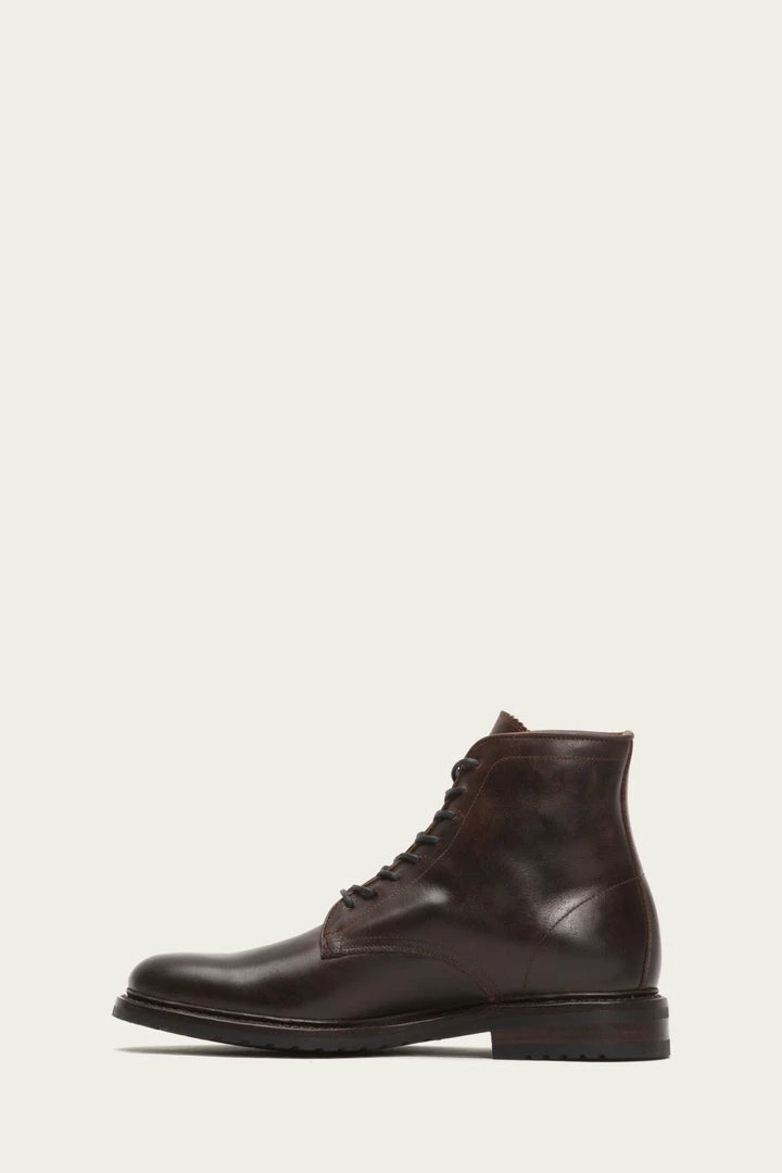 Made from a durable waterproofed pull up leather, these lace-up boots are based on a traditional robust design. Goodyear welted construction and round toe are considered finishing touches.