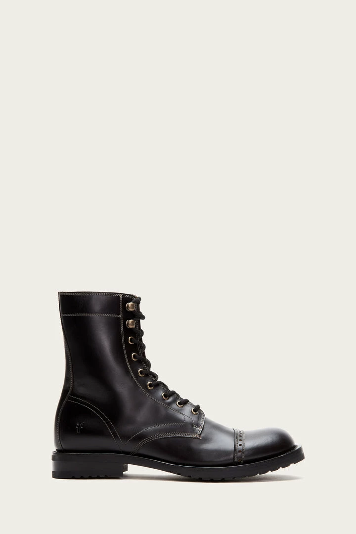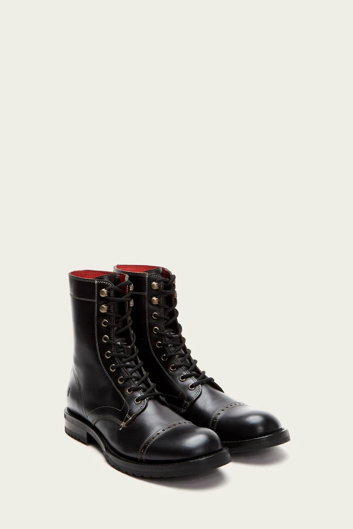 Frye’s heritage is deeply rooted in music. It was a natural synergy to collaborate with Matt Shultz, front man of the Grammy Award winning band Cage the Elephant. Part of the Matt Shultz X Frye Collection, the ‘Trenches’ is based on an iconic combat boot, with a twist, as it features a cherry red lining. The heavy rubber sole is hard wearing, eyelets detail the round toe cap and speed hook lace-up closures complete the look. A design that equates durability, function, style and originality.
