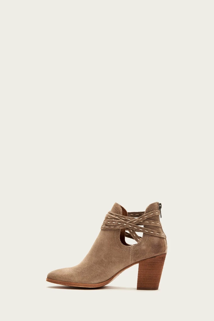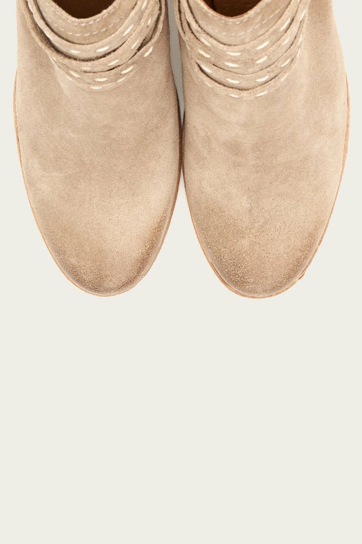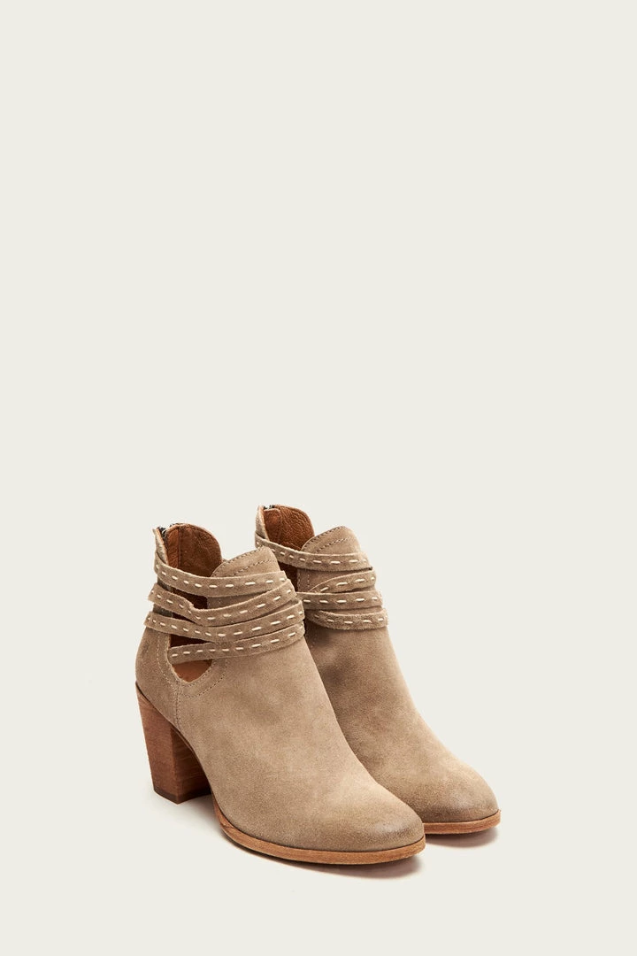 The shootie with hand-stitched detailing. Crafted from suede leather, this mid-heel standout masters comfort and cool, while the loosely layered pickstitched ankle straps create an eye-catching effect.– Leather lined