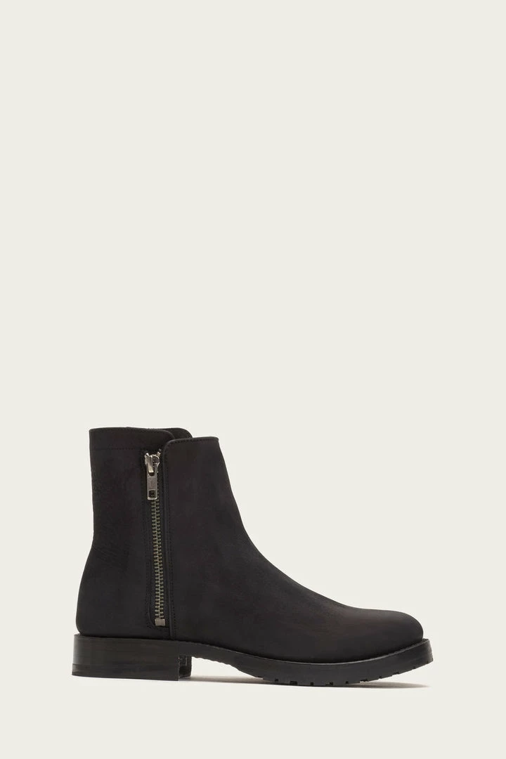 Equal parts ease and edge. Handcrafted from soft tumbled Italian nubuck leather, this is a bootie that defines casual comfort. The cool double-zip design offers styling versatility-”wear it zipped up or down. – Italian leather