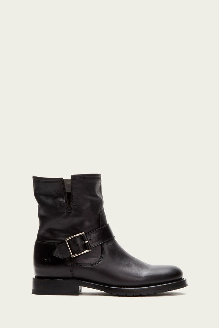 Made from smooth veg tanned Italian leather for an aged look that improves with wear these booties combine edge and elegance for an overall longer last. Asymmetric cut at shaft. Side buckle, thick lug sole and Goodyear welting lends moto inspiration that easily works from the city to the country.