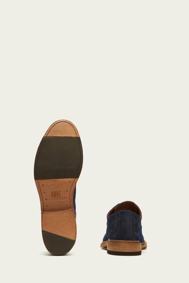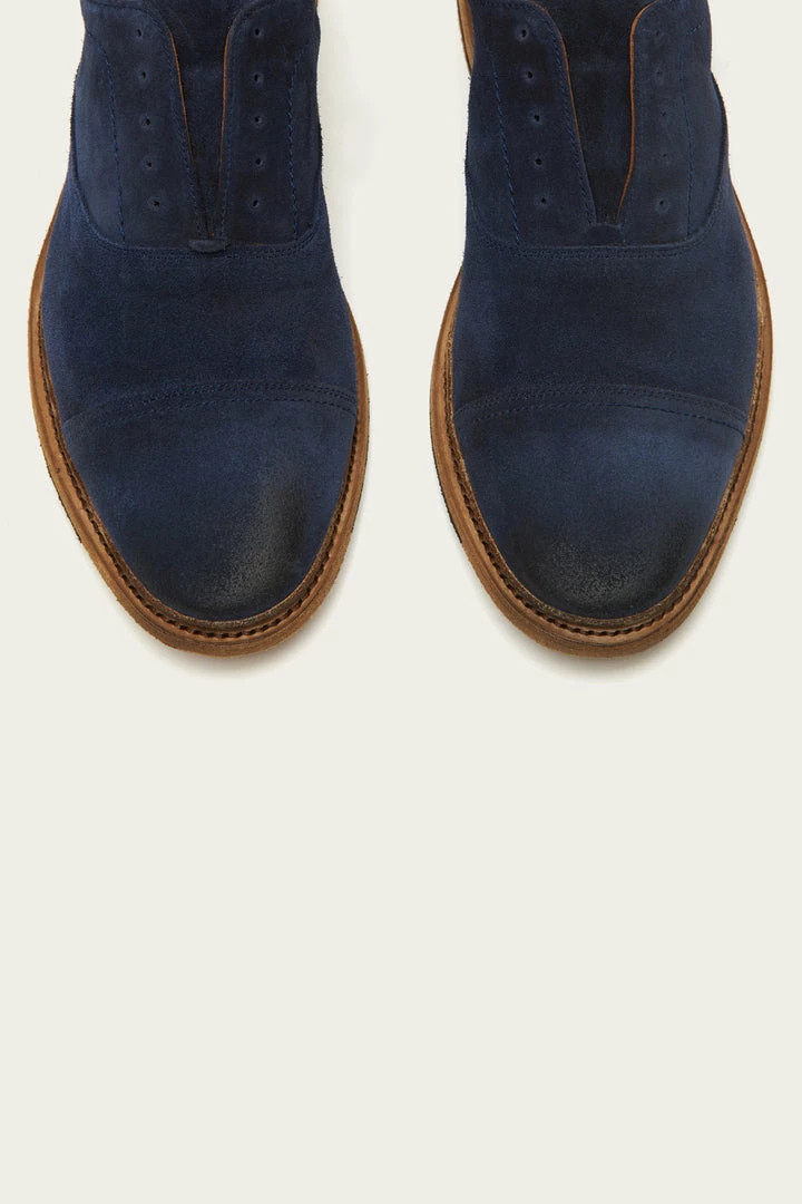 A shoe with options. Handcrafted from a washed and waxed Italian suede design, this casual shoe with elastic gore instantly dresses up or down. Wear it as a slip-on without laces for cool off-duty style or lace it up for a traditional touch. Good Year welted construction.