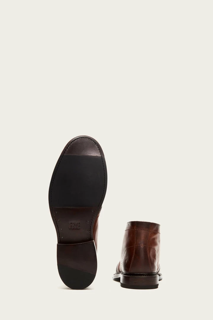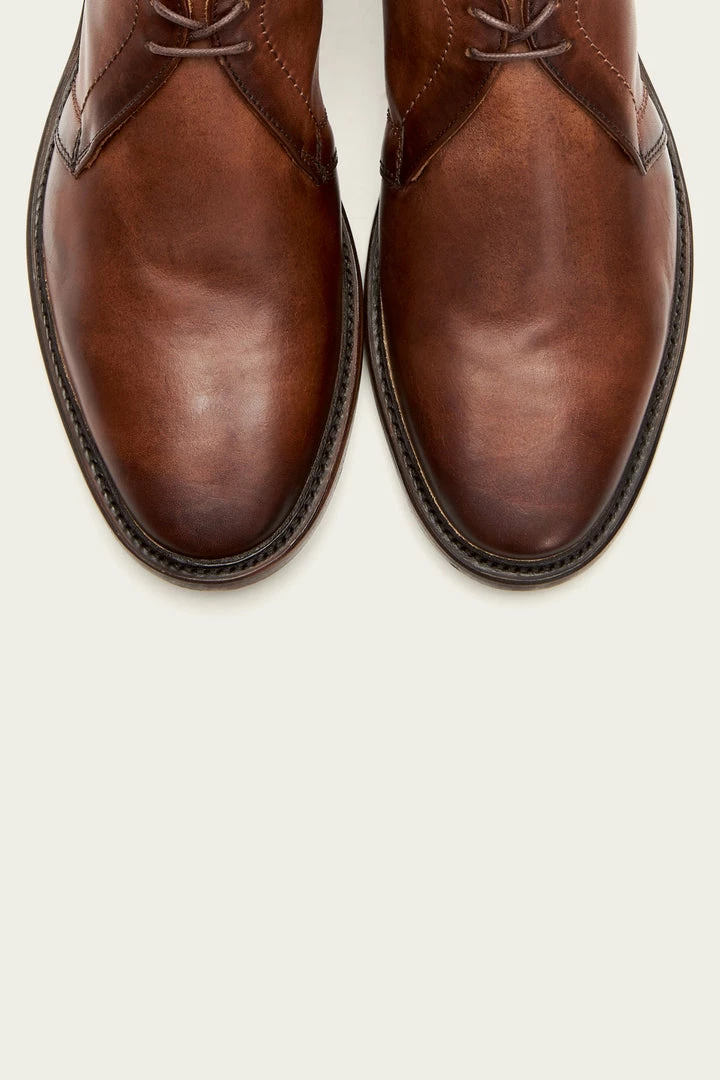 This chukka is fashioned from antique pull up leather and hand-brandished for that lived-in, distinctly Frye effect. A flexible structure and PORON padded footbeds let you skip the dreaded break-in period. Built to last with Goodyear welted soles, and tonal laces to top off the look.