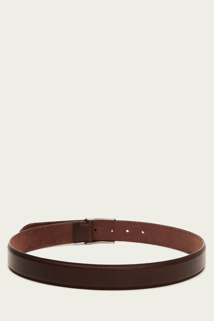 This signature belt will add a sleek finishing touch to formal tailoring. It has been crafted from a flat leather panel that will easily slip through the loops in your trousers and is deftly finished with an antique metal hardware logo plaque.