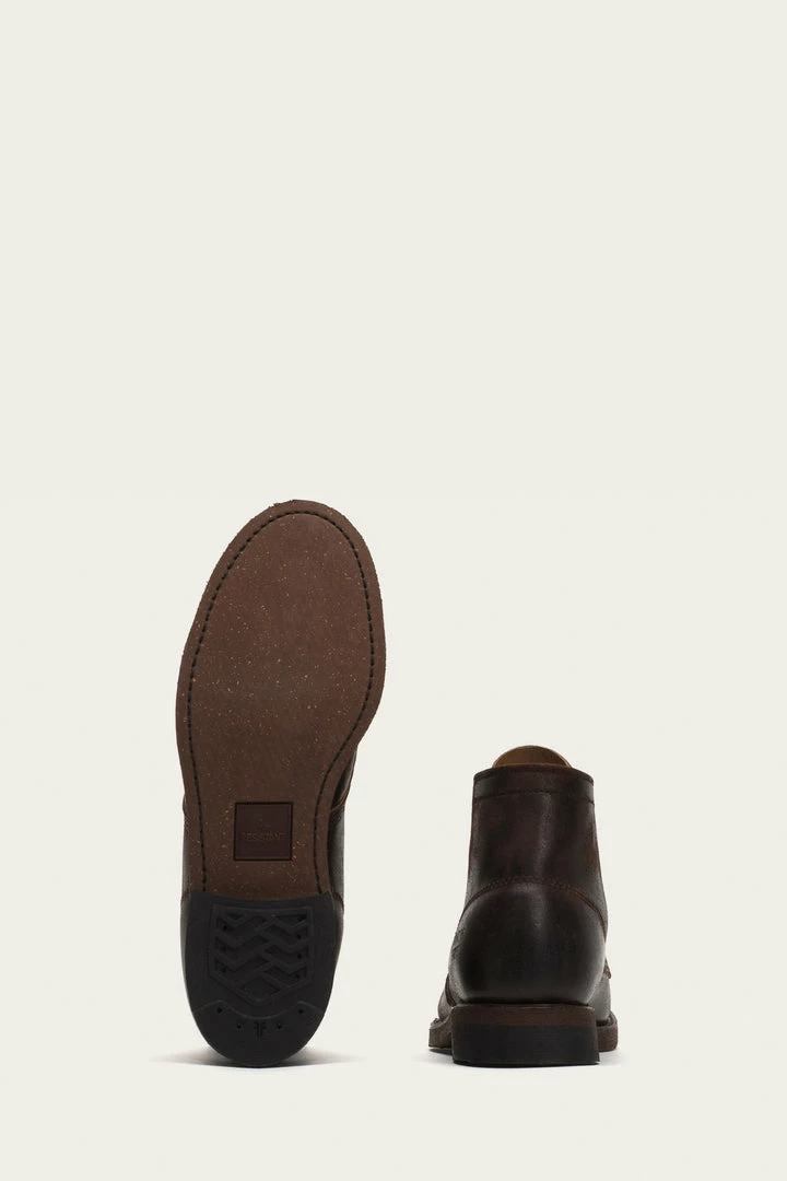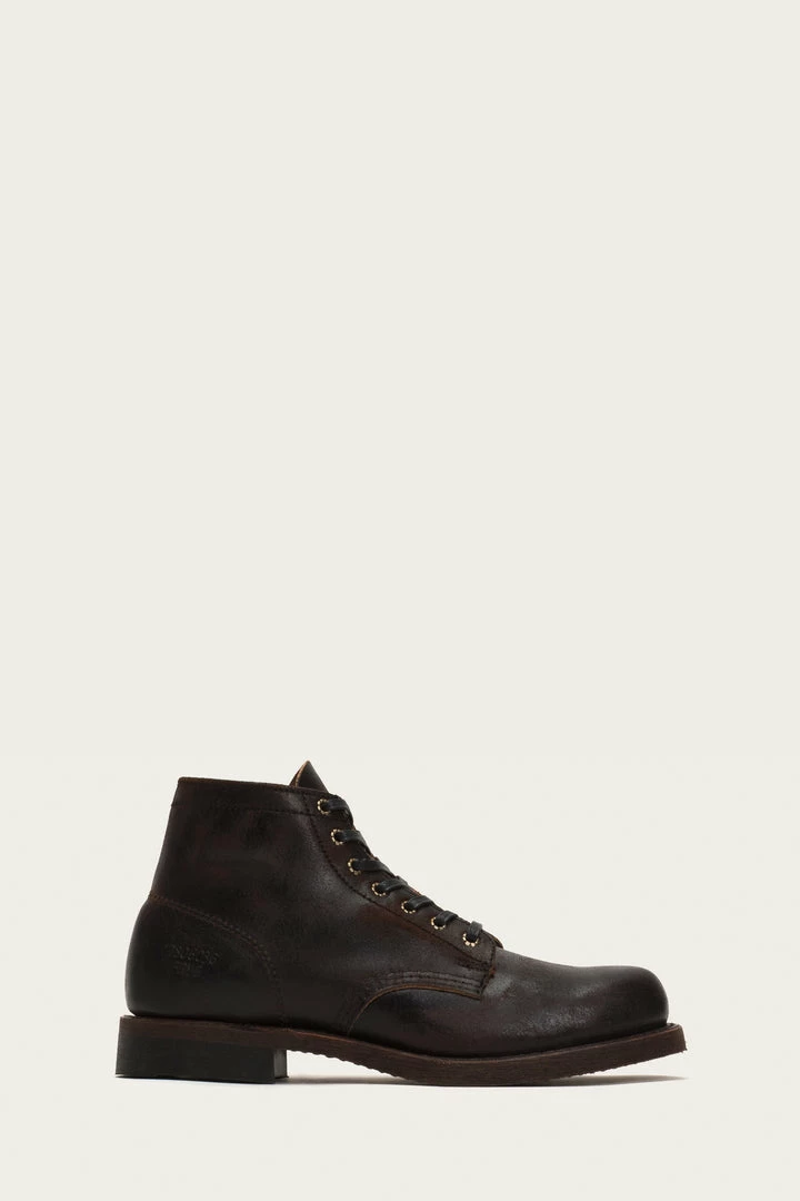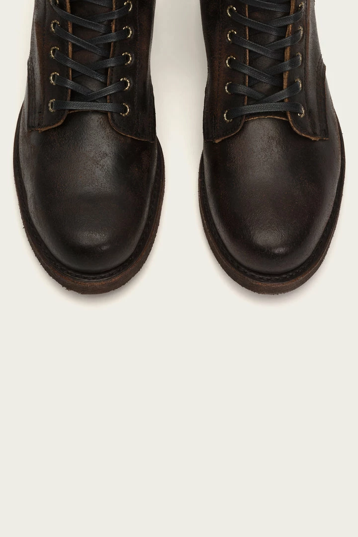 These lace-up Prison boots are Made in the USA from a combination of waxed suede and Horween leather that has been treated with a special hand-finish that only gets better with each and every wear. Signature accents further enhance the brands characteristic trait for fusing together rugged vintage looks. Goodyear welted construction. Part of Our Made in USA Collection.