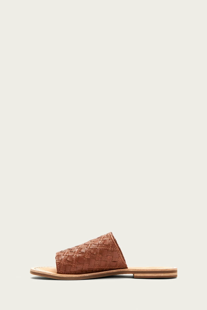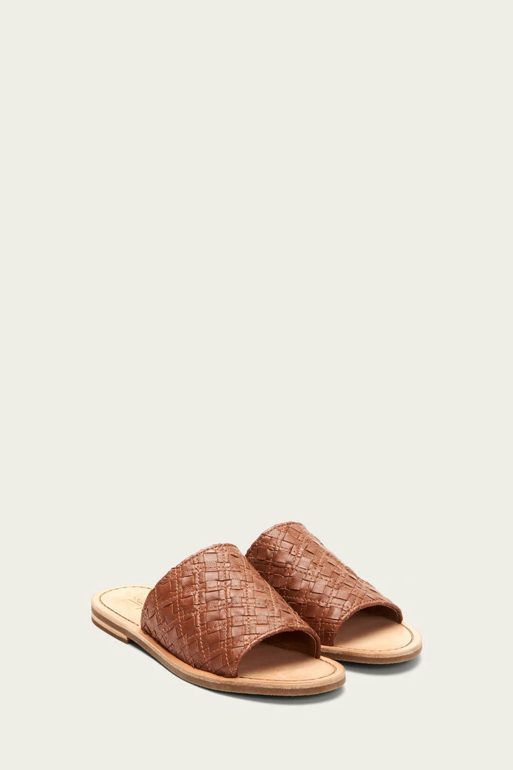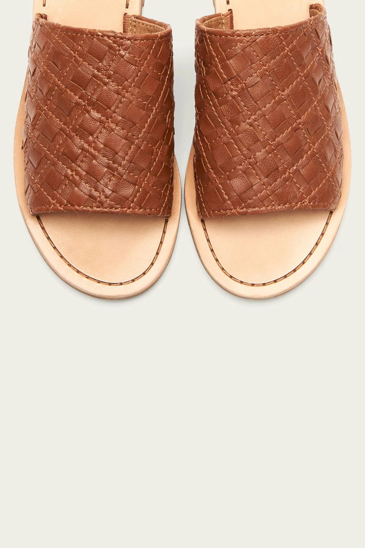 These slides are a perfect design as they’re so comfortable with a rubber bottom and the soft sheep Nappa leather will glisten gorgeously. The wide leather vamp strap is softly hand-woven lending it a signature artisanal technique.