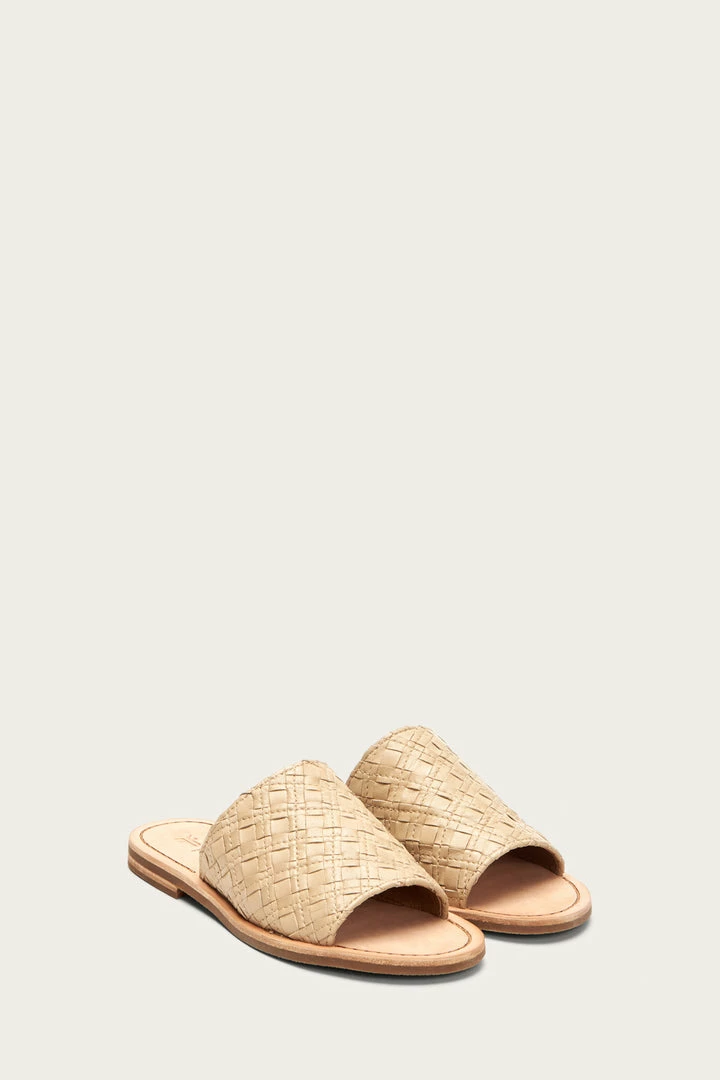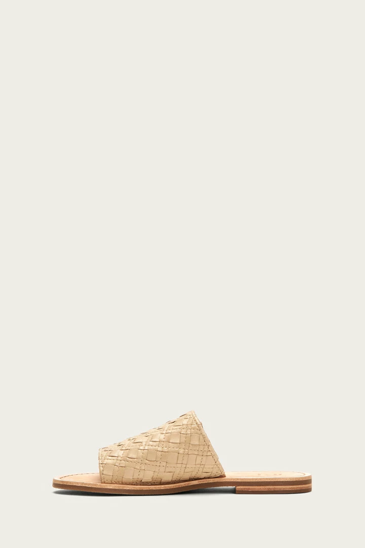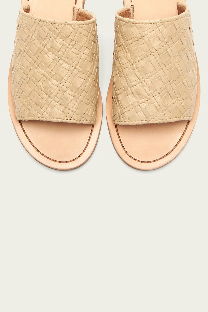 These slides are a perfect design as they’re so comfortable with a rubber bottom and the soft sheep Nappa leather will glisten gorgeously. The wide leather vamp strap is softly hand-woven lending it a signature artisanal technique.
