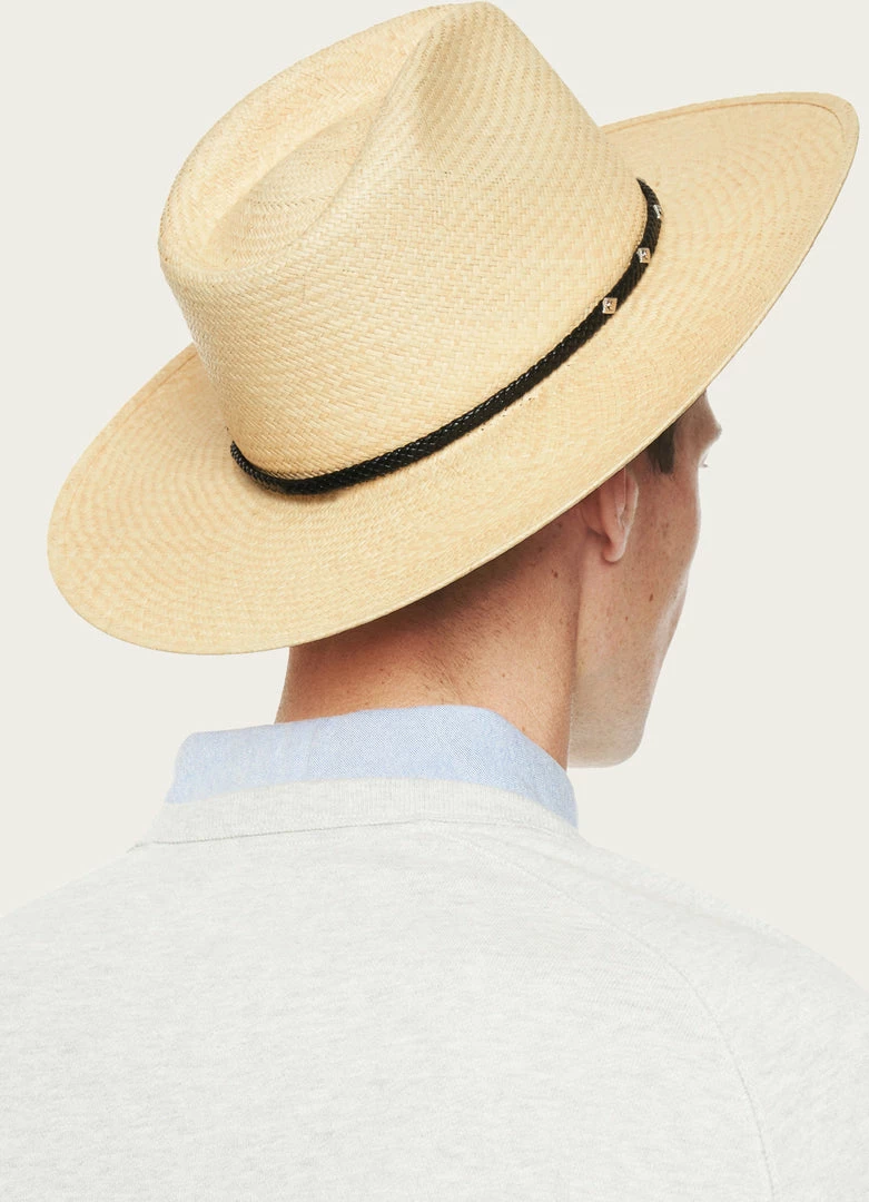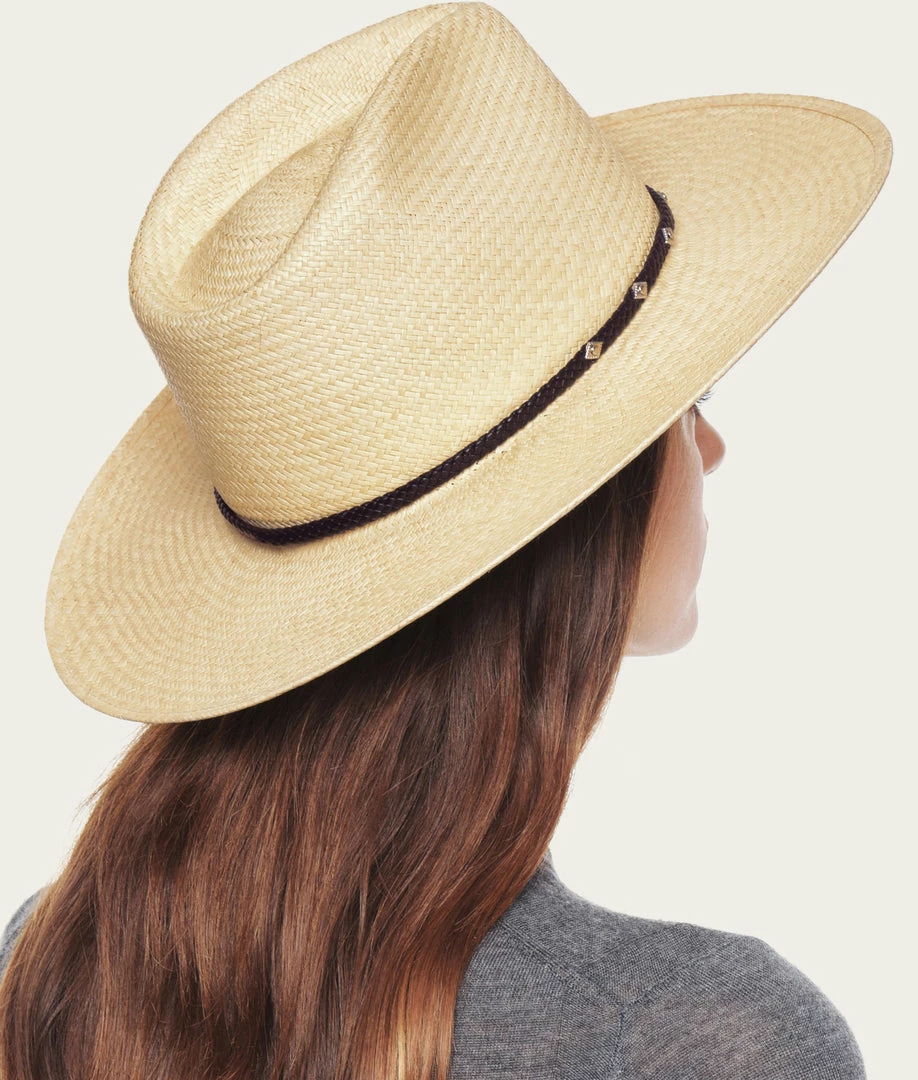 EXCLUSIVELY OURS. Roper personality with panama style. Toquilla fiber that’s handwoven in Ecuador turns this versatile western look into a warm-weather must. Lightweight and breathable, this reimagined favorite is treated to prevent drying and cracking. The braided leather band with silver studding adds character. – Made in the USA. Sourced from domestic and imported products.