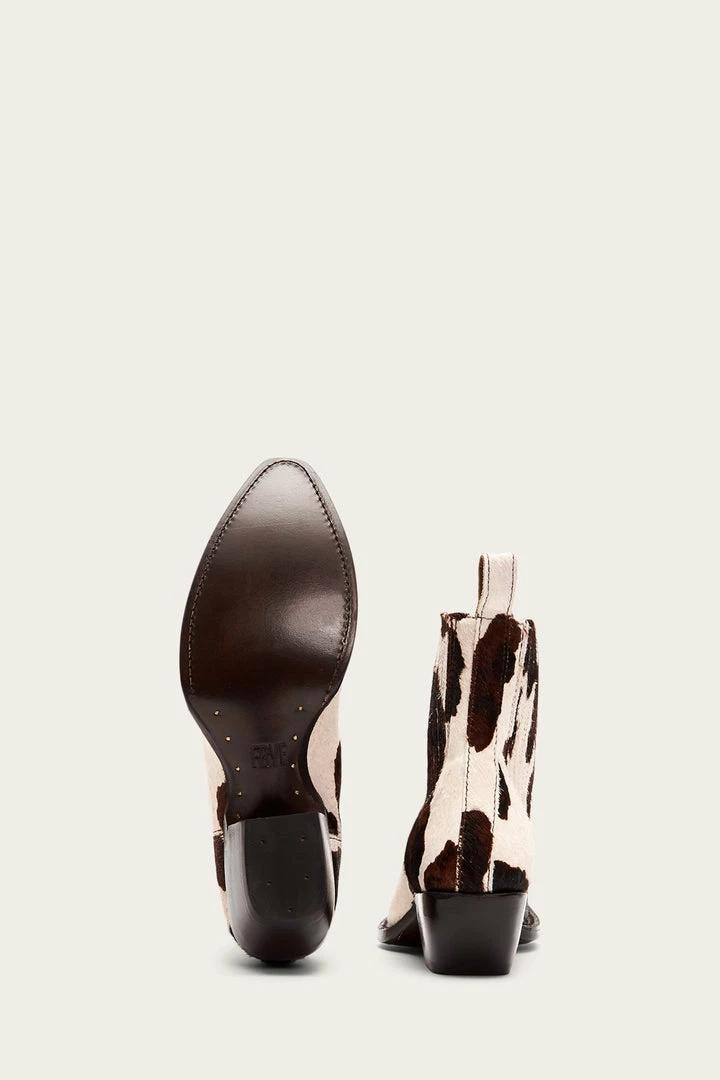 The Sacha booties are a cool combination of Western and Chelsea styles. Made from cow printed haircalf leather, they have a sleek pointed toe, elasticated inserts and pitched heel to ensure they’re comfortable to wear from day into night. – Leather lined