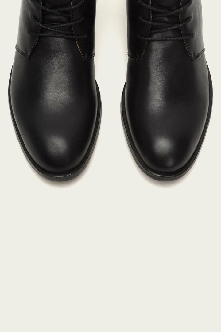 A classic chukka with clean-lined style. Smooth antique pull-up leather from French hides that are vegetable tanned in Italy for a rich patina that develops with wear gives this boot stylish character while the full rubber bottom lends comfort and flexibility. – Italian leather