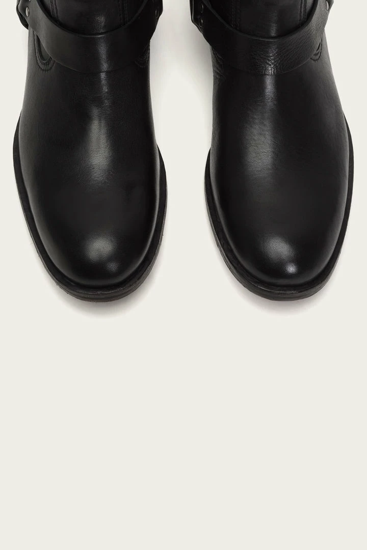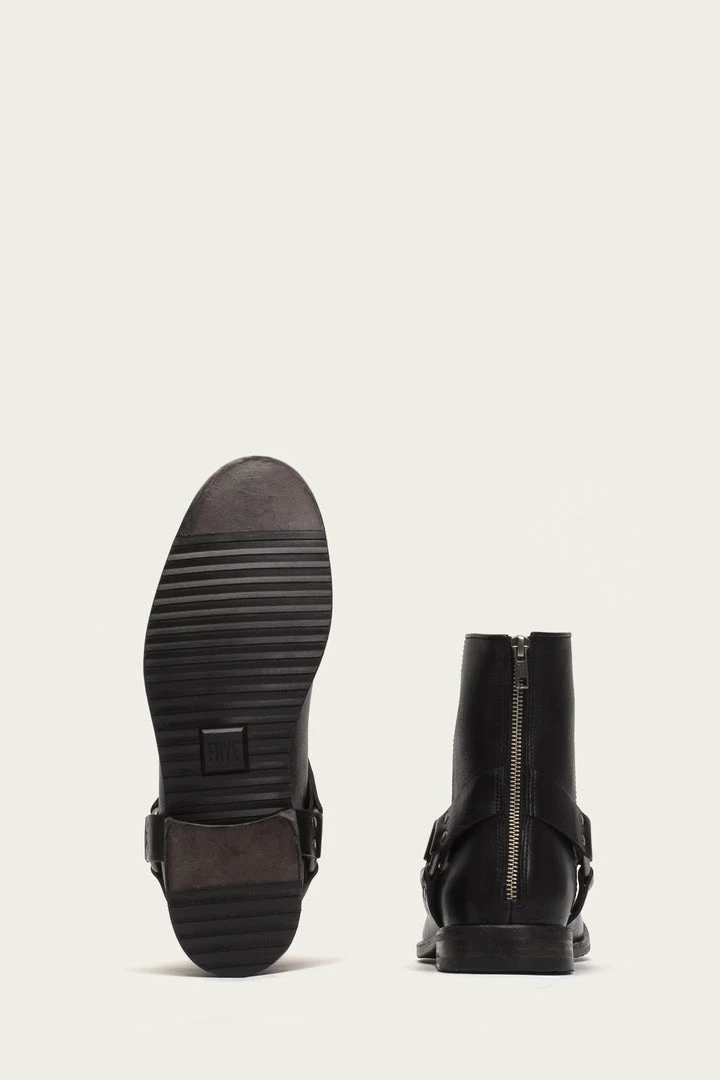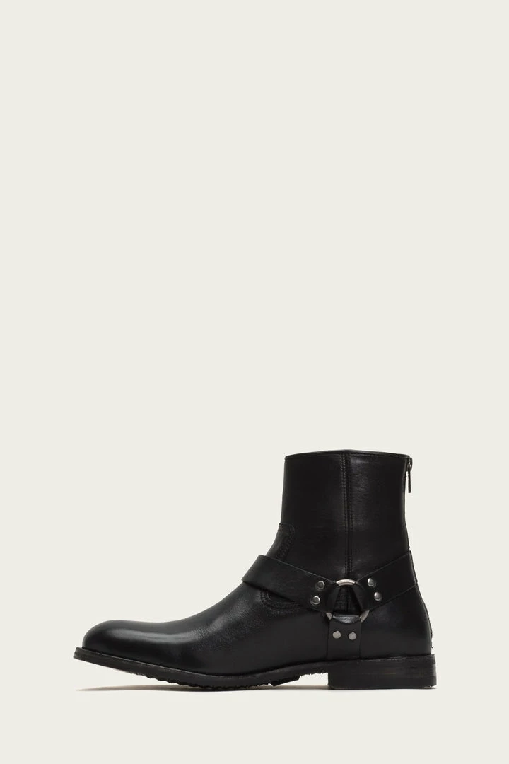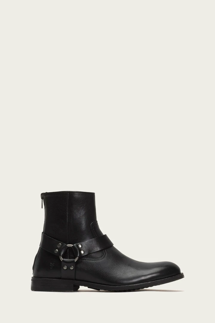 The biker-inspired Frye heritage harness straps with tough hardware typifies these boots for timeless style. Smooth full grain leather from French hides that are vegetable tanned in Italy for a rich patina that develops with wear gives these clean-cut boots stylish character while the full rubber sole lends comfort and flexibility. Zipper closure. – Leather lined