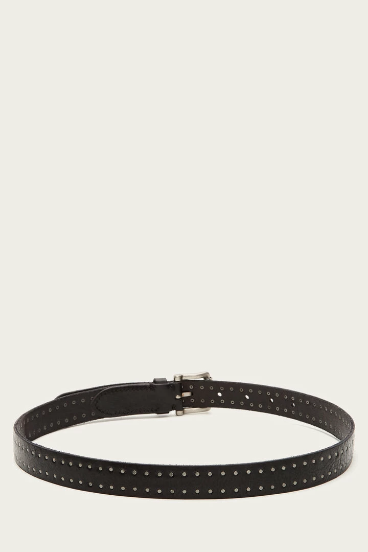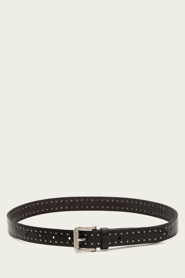 This belt has been expertly made from leather and embellished with antique metal flat studs throughout for an added flair.