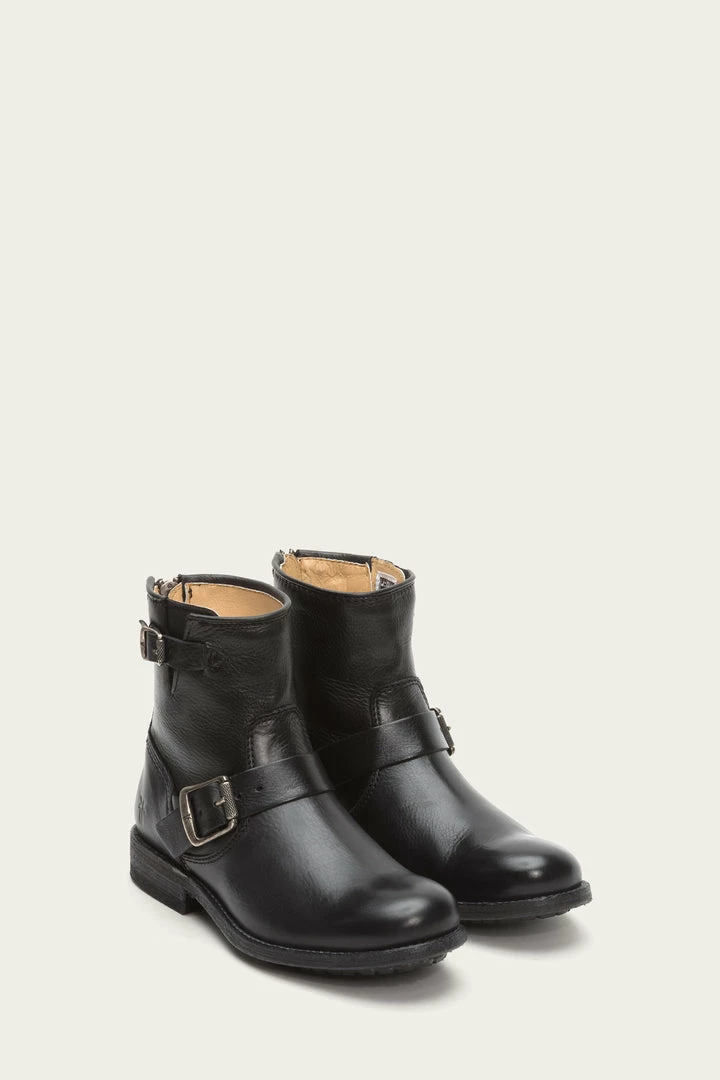Inspired by our men’s collection and completely handcrafted from the finest of Italian leathers, the Tyler Engineer shows off our signature craftsmanship and design. Washed for a soft vintage feel, this boot hugs ankles with its antiqued metal buckles and back zip. – Italian leather- Leather lined- Leather with rubber outsole- 5 4/5″ shaft height- 10 3/5″ shaft circumference- 1″ heel height