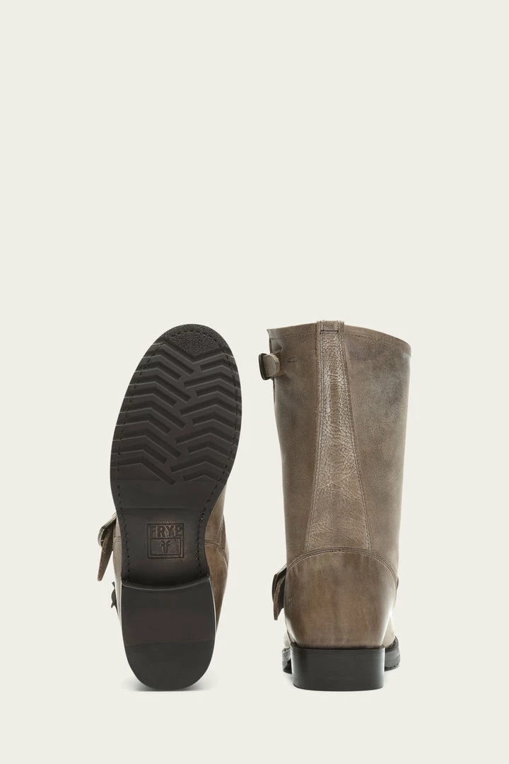 – Unlined- Leather outsole with rubber forepart- Antique hardware – 9″ shaft height- 13″ shaft circumference- 1″ heel height- Stacked leather heel