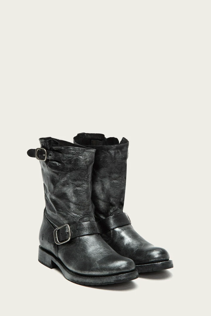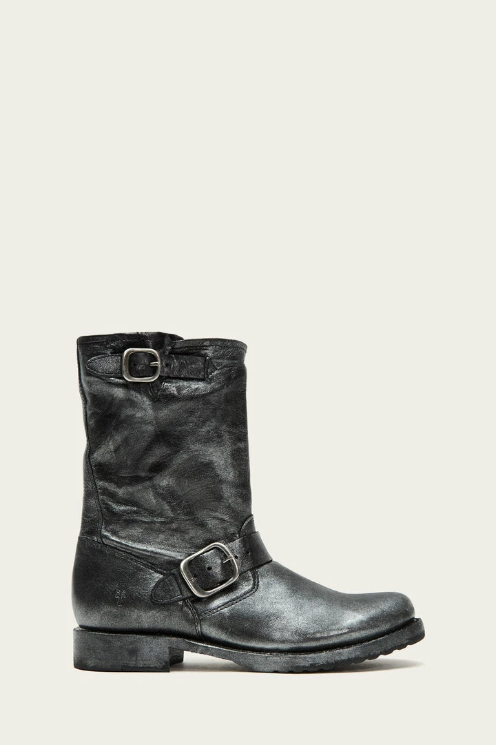 Metallic paint is hand applied to the finished Italian leather pair for a unique twist on our classics. The paint will wear down over time making each pair one-of-a-kind. Overall, the Veronica short is built with a perfect mid-calf height.