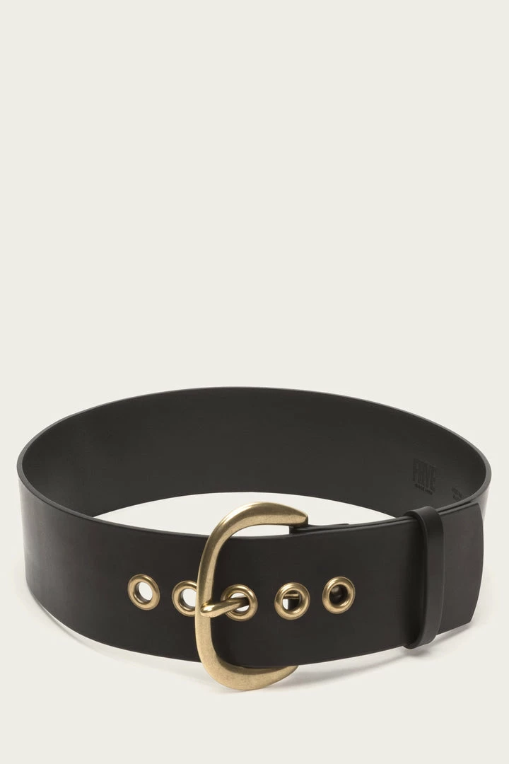 EXCLUSIVELY OURS. Fashioned to cinch the waist or casually hug hips. Handcrafted from smooth vegetable tanned Italian leather, this metal grommet belt with bold Italian hardware buckle is designed with a wide silhouette that layers beautifully over the season’s coziest knits. – 100% leather