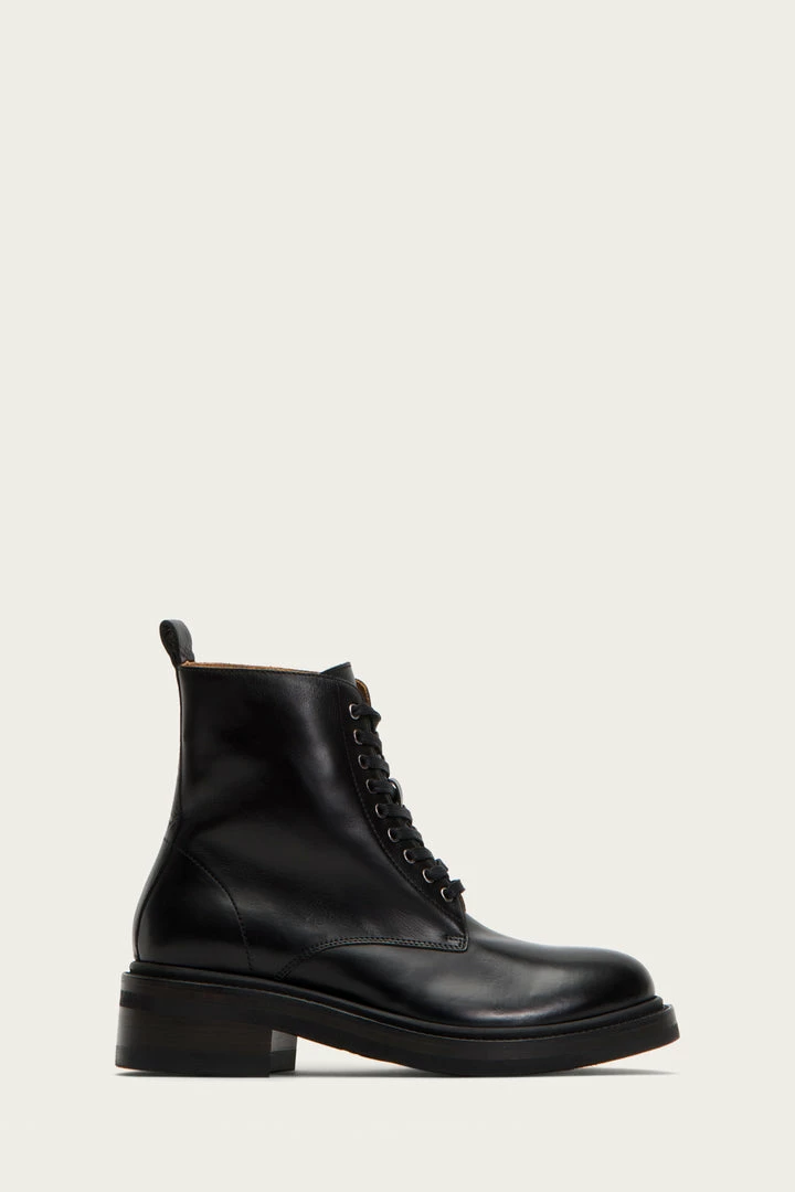 Made in Italy from the finest smooth vegetable tanned leather the rounded toe Alice combat boot is a classic. The low heel is comfortable enough for all-day wear.