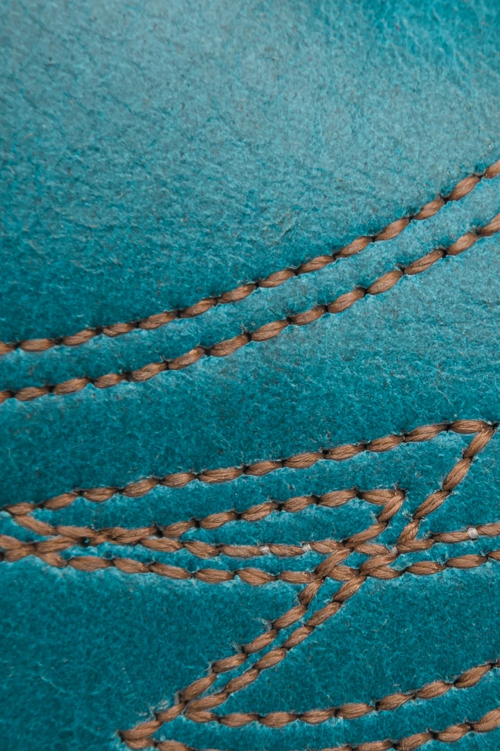 Everyone’s favorite western boot gets kicked up with our signature harness strap and bold, head-turning color combos. The leather is washed then battered with stones for that perfect worn-in look. Stitched and studded, these western boots were made to be seen.