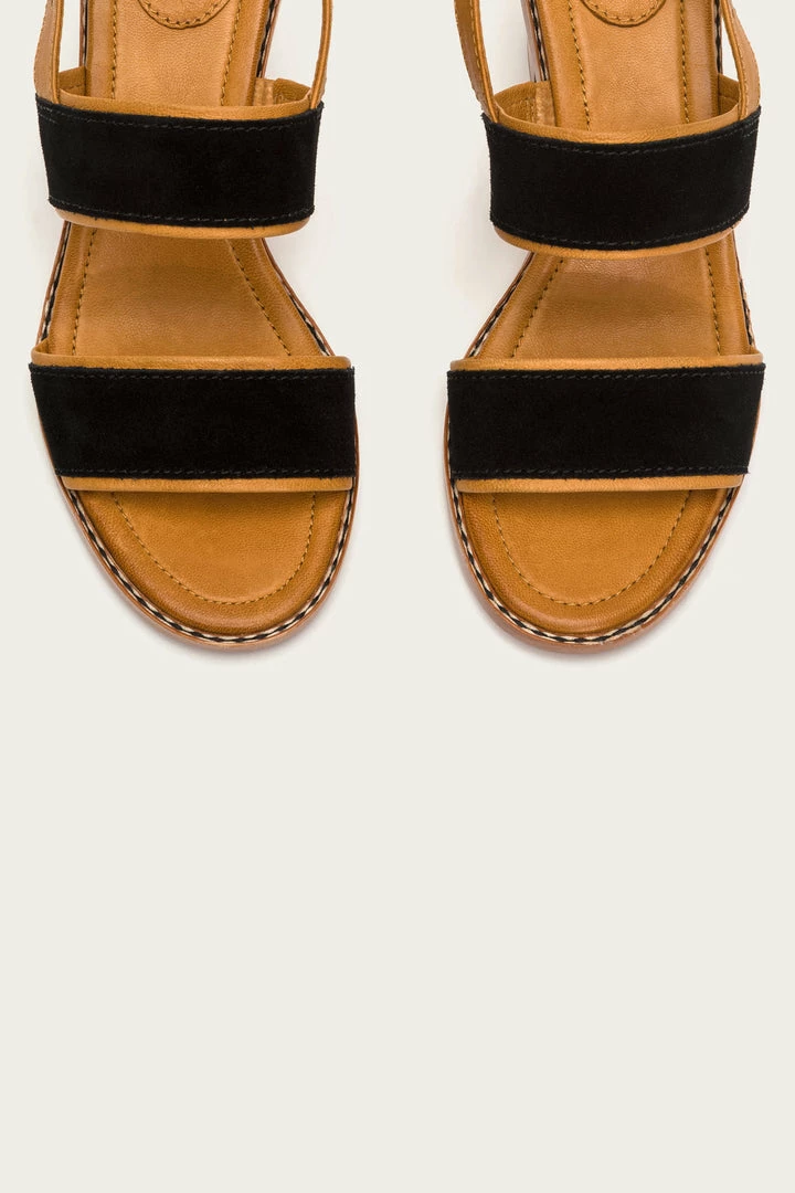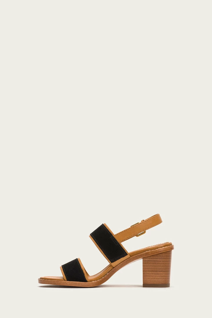 EXCLUSIVELY OURS. Colorful contrast with class. Brielle’s effortless style is reinterpreted as a dressy slingback in a blend of Italian suede and smooth Italian leather. The chunky-chic mid heel makes this sandal a wear-everywhere favorite. – Italian leather