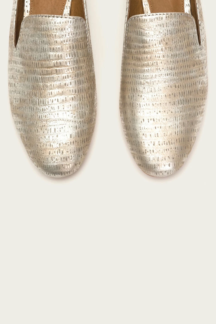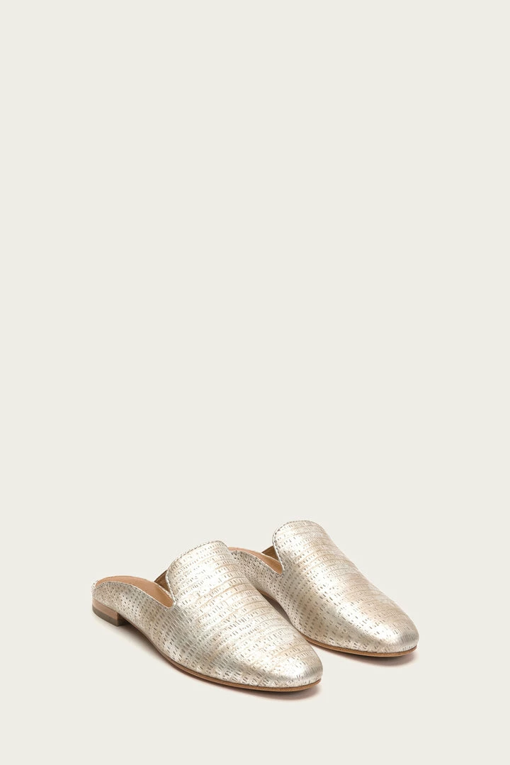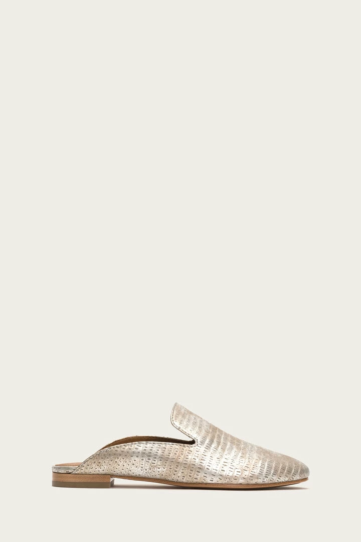 EXCLUSIVELY OURS. Designed for effortless dressing. Handcrafted from croc-embossed metallic Italian leather, this casual mule with rounded toe slides right on, imparting casual ease to any outfit. – Italian leather