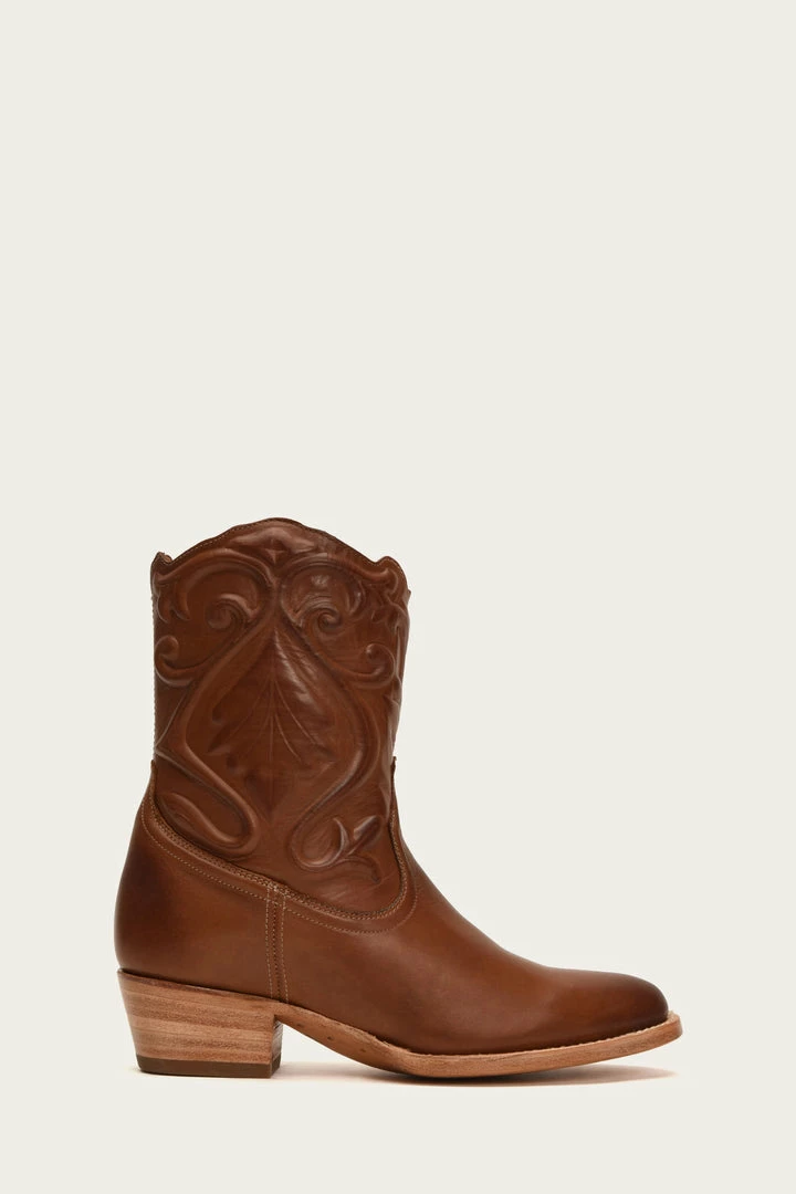 Embroidered western beauty. Hand-burnished full grain Italian leather enhances the exquisite detailing of this pull-on boot’s trapunto embroidery delivering a beautiful quilted effect. – Italian leather