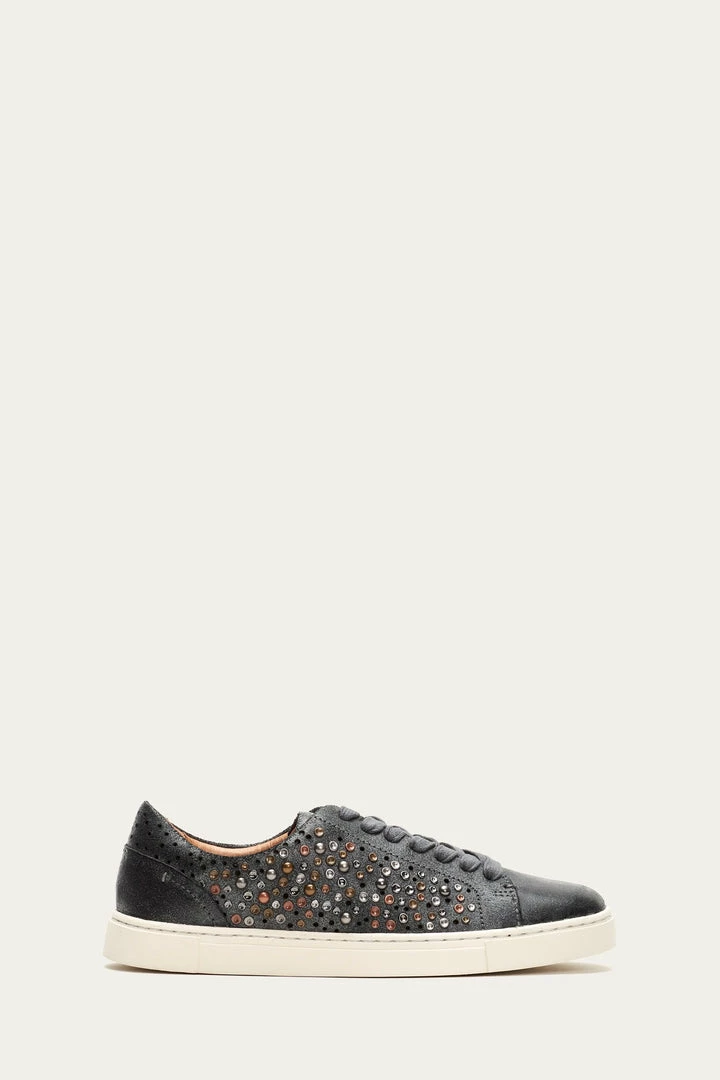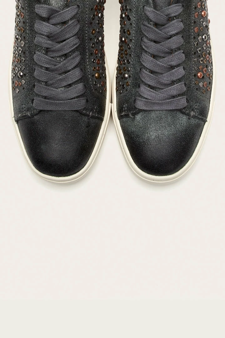 Handcrafted from waxed vintage suede, this low lace sneaker is embellished with multi-colored, antiqued hammered studs and perforated for that laid-back look you love. The ultra-soft leather lining delivers a barely there feel, while molded footbeds cushion every step.– Leather lined