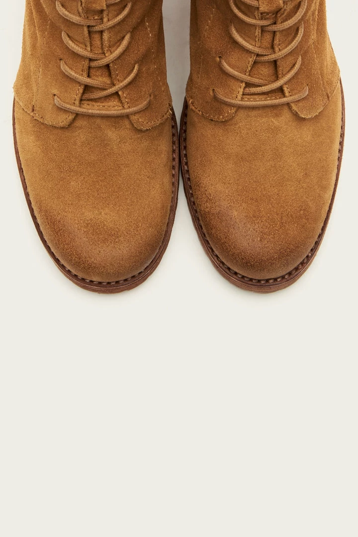 Made from oiled suede, this pair has a lace-up front and the pull tab at back makes them easy to pull on and off. They’re set on leather wrapped heels and have lugged leather, rubber and EVA soles to secure your step. – Unlined shaft
