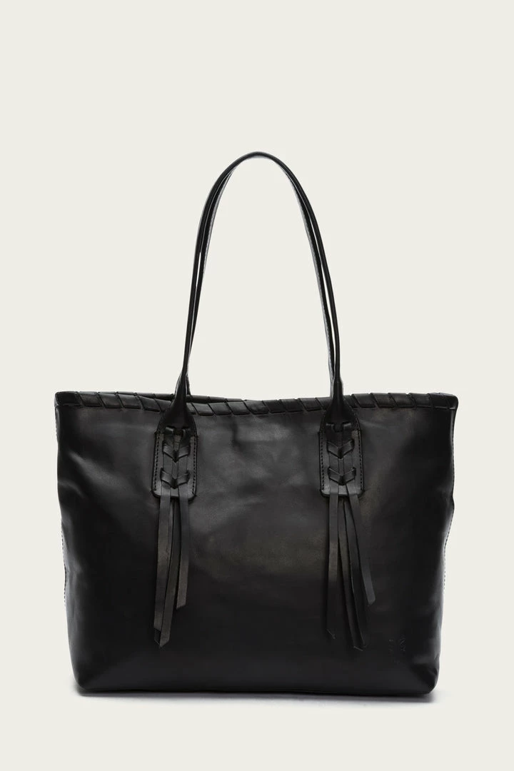All business with a bohemian attitude, this shopper gets things done with style. Our classic tote silhouette is accented with intricate whip stitching around the edges in Frye’s signature craftsmanship. The bottomless-seeming tote has room for everything from laptops to gym stuff to your latest shopping finds. – 10 1/2″ height- 12 1/4″ width- 8 1/4″ handle drop- One zip and one slip interior pockets- Magnet closure