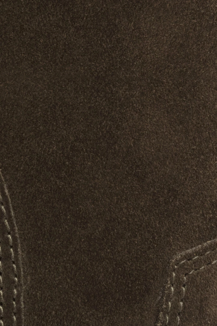 The perfect western-inspired bootie. Handcrafted from soft oiled suede for luxuriously rich color vibrancy. San Crispino construction, one of the oldest forms of shoemaking, creates the artisanal stitching effect. The high heel elevates it to a new level of chic. – Italian leather- Leather lined- Rubber outsole- 5 1/4″ shaft height- 11 1/2″ shaft circumference- 3 3/4″ heel height