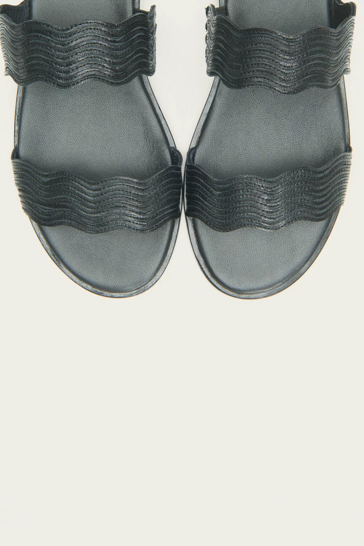 Artisanal attitude with a feminine touch. Fashioned from oiled vintage leather, this sandal stands out with its hand-stitched wave paneling. Fixed on a leather outsole, it features a hidden gore for effortless, everyday wear with the perfect fit. The soft, leather welt construction and tonal, foam-padded footbeds offer maximum comfort and support– Leather lined