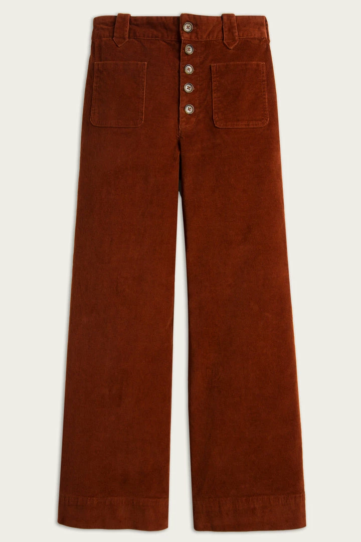 Frye dates back to 1863, but it has certainly kept up with the times. These tailored corduroy pants hold the cropped wide-leg flare perfectly in a high-rise silhouette. Features patch pockets, zipper and button closure.