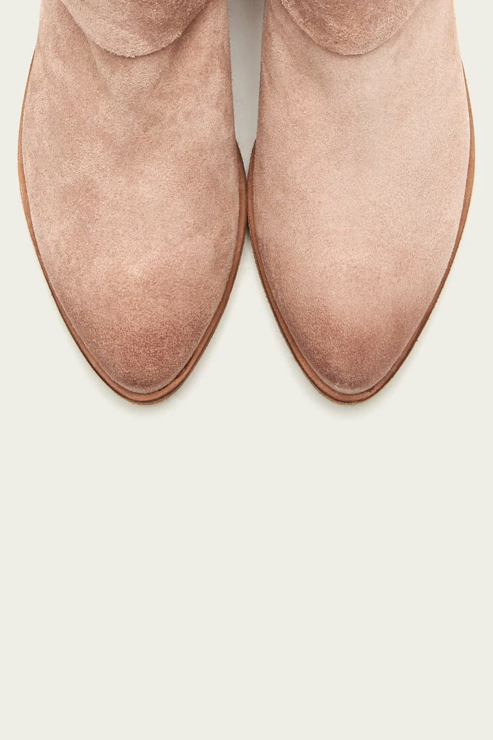 At the forefront of Frye craftsmanship are iconic details such as the signature ring harness strap and hairy suede. The asymmetric cutout topline hits just above the ankle and keeps the Western silhouette in focus. Zip closure at back. Padded footbed and rubber pods at outsoles keeps with comfortable traction.