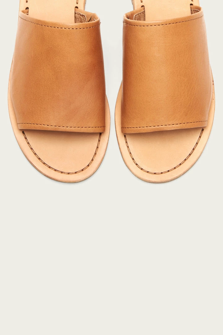 These slides are a perfect design as they’re so comfortable with a rubber bottom and the antiqued vegetable-tanned leather will glisten gorgeously. The wide leather vamp strap is softly detailed with a signature artisanal stitch.