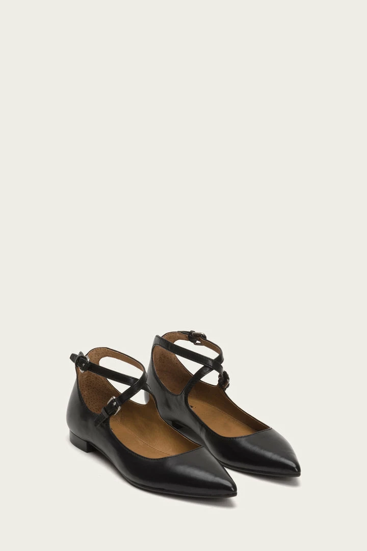 Dressy sophistication with feminine style. Beautifully tailored with a pointed toe and delicate cross strap with double buckles, this shoe is handcrafted from soft nappa leather for a luxurious feel. Lightweight with a low-profile outsole and rubber forepart – it’s like you’re walking on air. – Leather lining